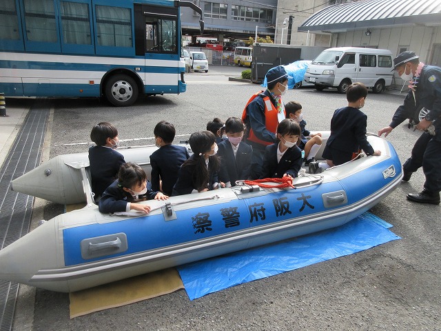 その後も、ゴムボートやパトカー、バスの中を見せて頂き、警察署の方のお仕事を教えて頂きました。