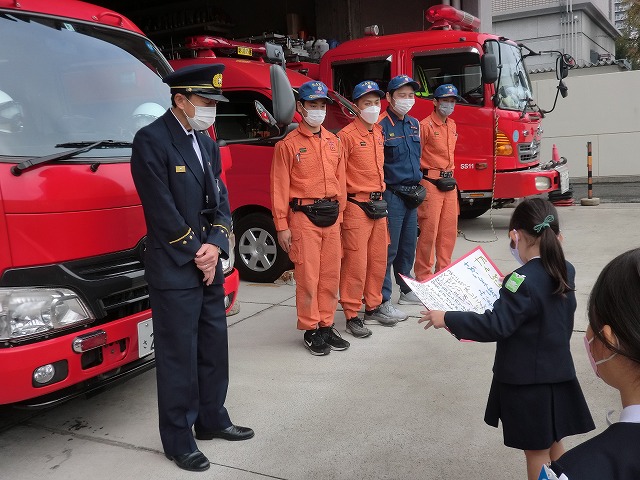 大きな声で 感謝状を読んでくれて、かっこよかったです\(^o^)/メッセージ付きのれいも 消防署の方に 喜んで頂けました。