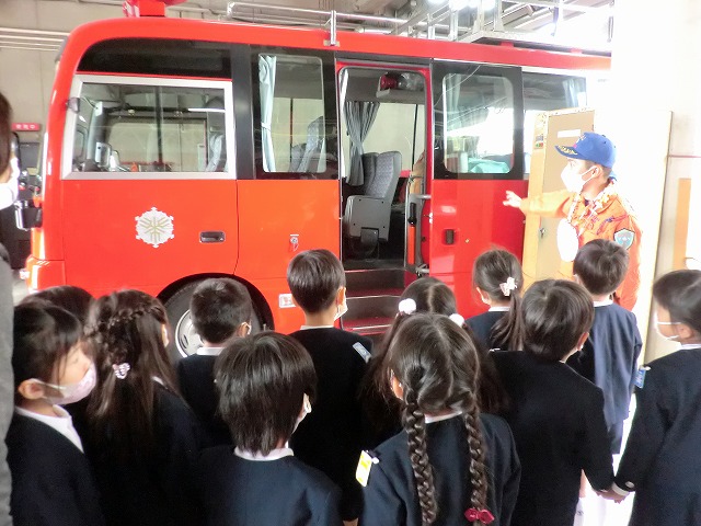 様々な種類の消防車を見ながら質問をして、消防士さんに答えてもらい、消防車のすごい所をいっぱい見つけられました\(^o^)/