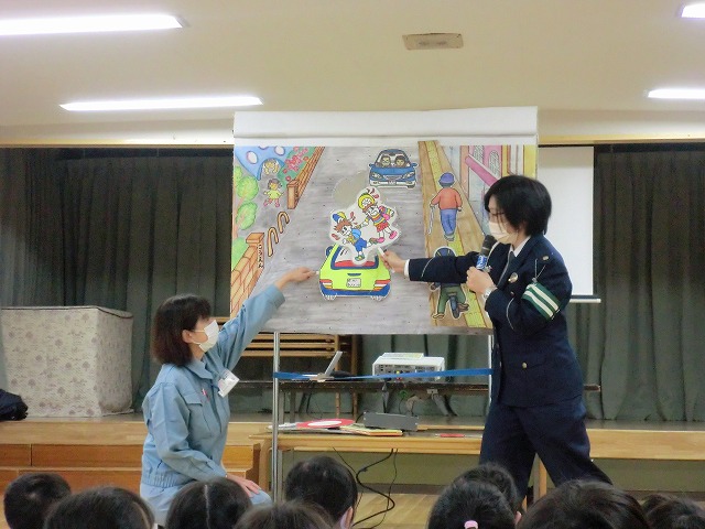 今日は、警察署の方が 交通安全のお話に来てくださいました。