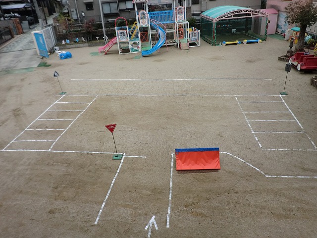アニメーションを見た後は、実際に園庭で歩く練習です☆