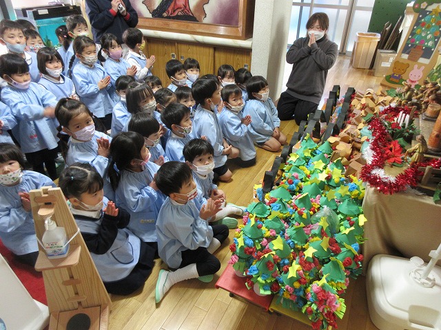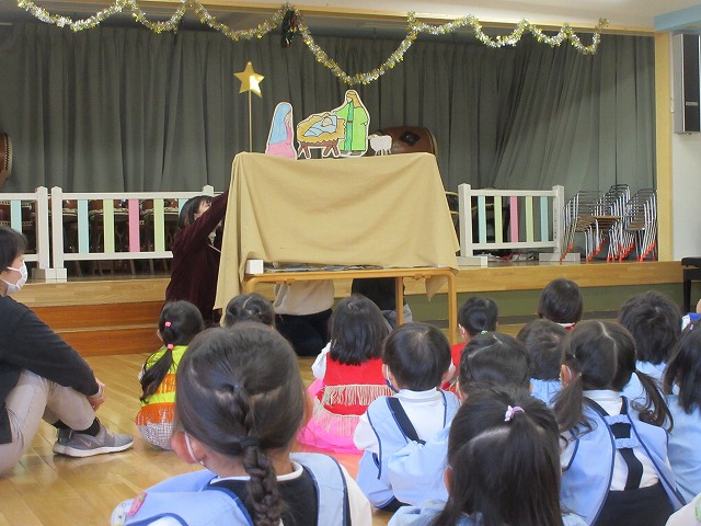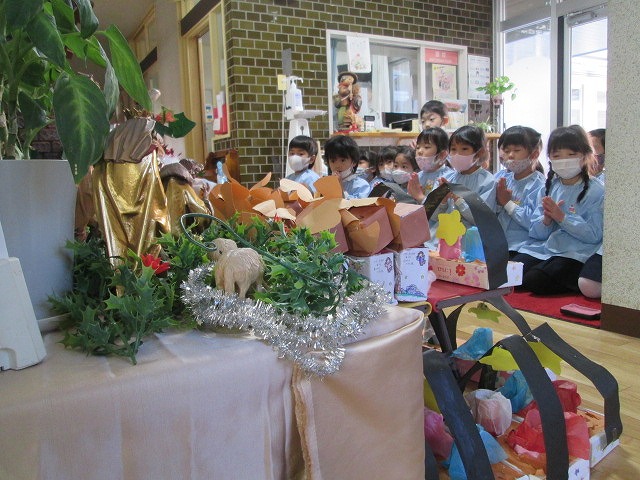 感染症を考慮して、2グループに分かれてのクリスマス会でしたが、子どもたちは十分に楽しめたようです。幼子イエス様の誕生の意味を胸に、心身ともに豊かに育ってくれますように。世界が神様の愛と平和で満たされますように。