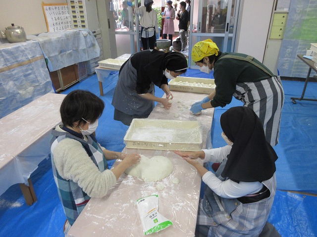 お手伝いをしてくださるお母さんたちや先生たちも、お餅を丸めるのに必死でした。。。