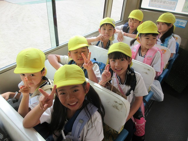 園バスに乗って出発です!!わくわく!!楽しみだな!!