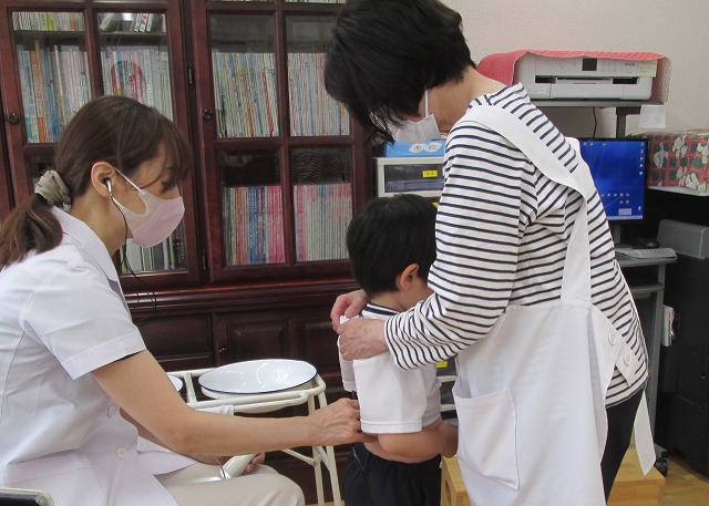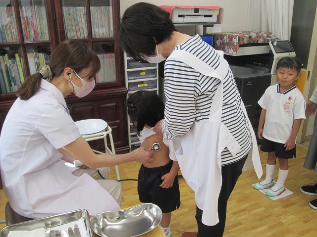 やさしいお医者さんと 看護師さんが 子どもたちを診に来てくださいましたよ☆「おくち、あーんしてねー」と言われ、