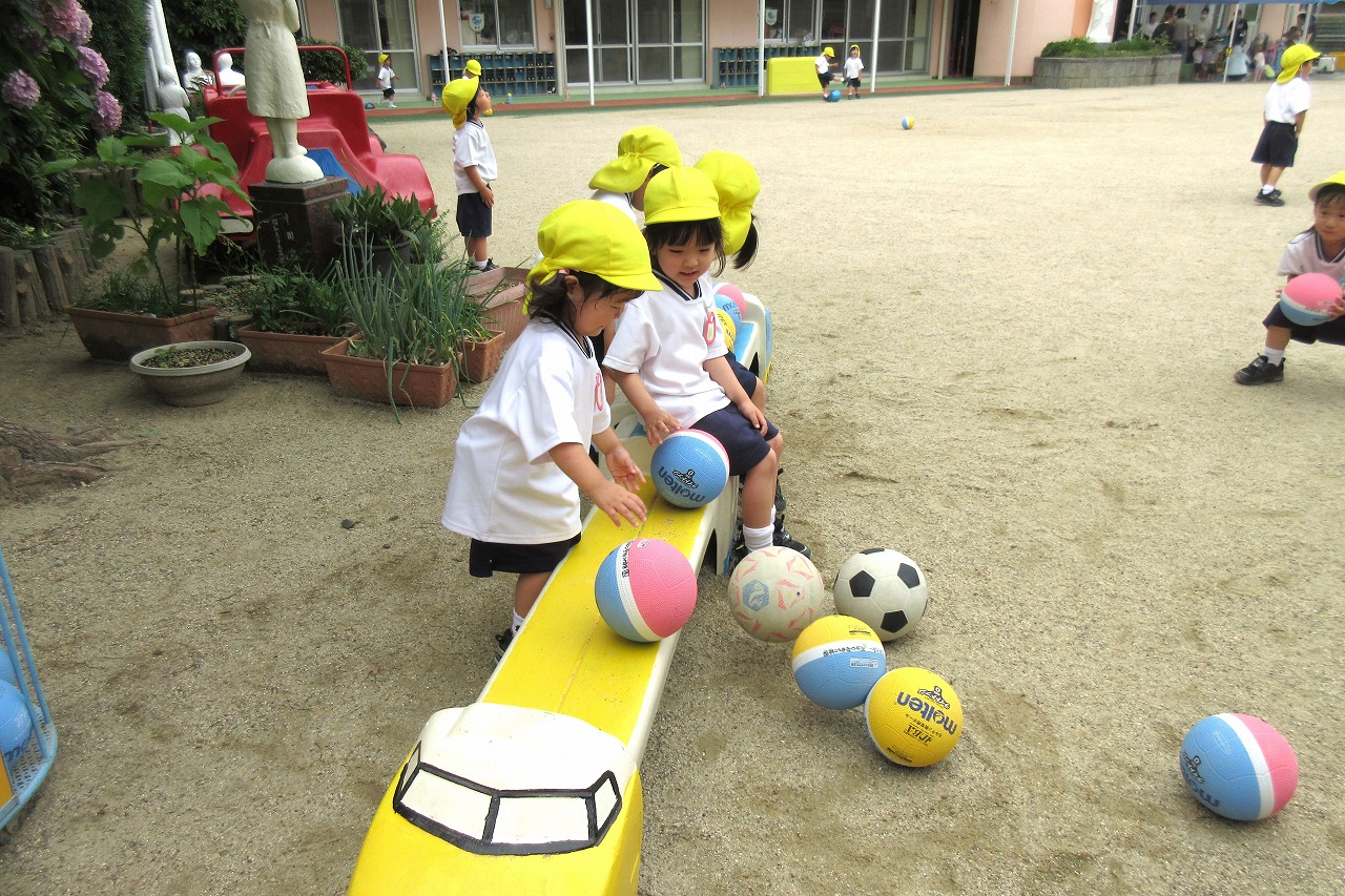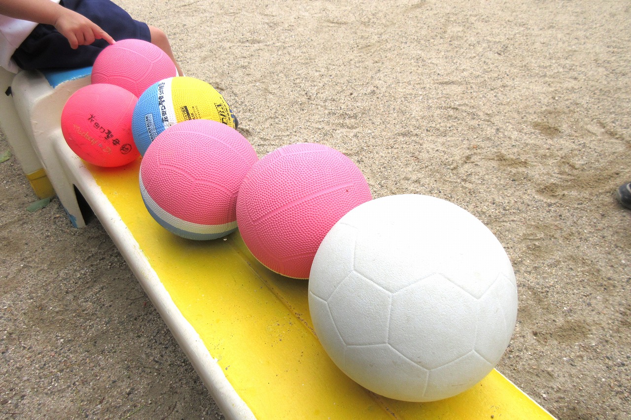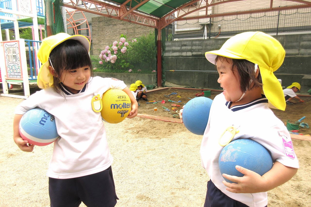 こちらは、ボールを2つかかえて「2個持てたー!」