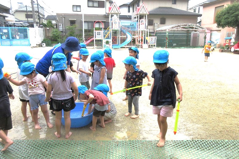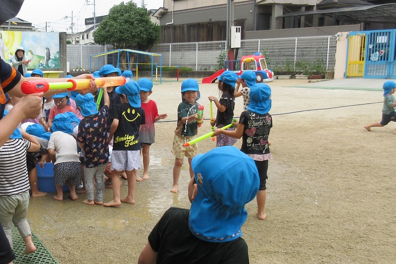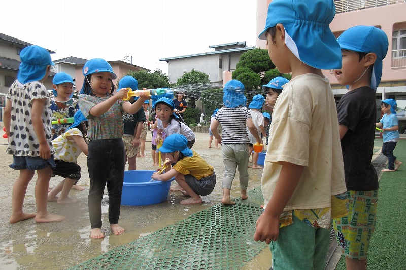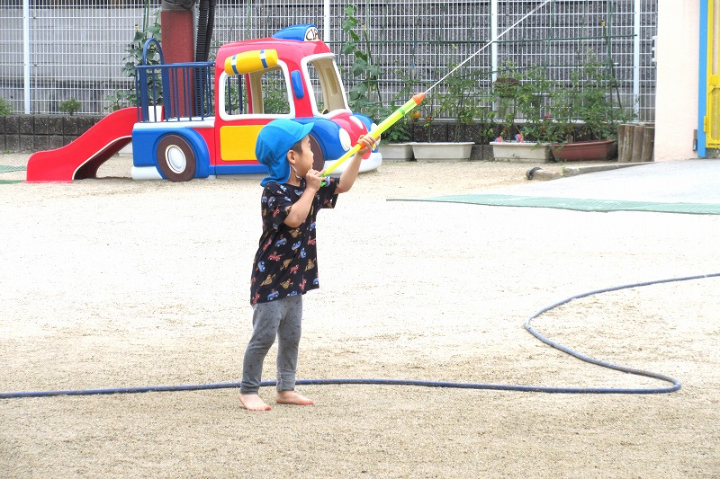 お友だち同士でも、水のかけあいっこをしました(^O^)