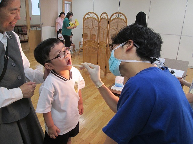 歯医者さんに「あーしてねー」と言われると、子どもたちは「あーーーーーー」と大きく口を開け、「いーしてねー」と言われると、歯を閉じて「いーーーーーーー」と見せることができました!