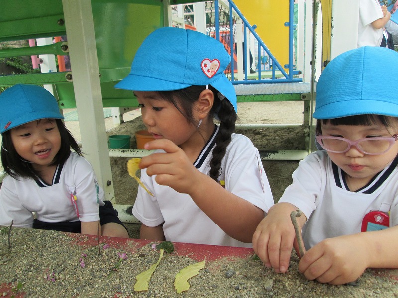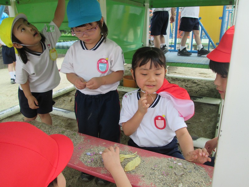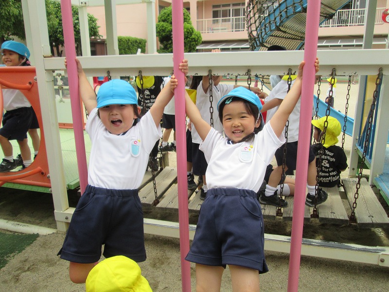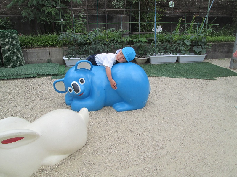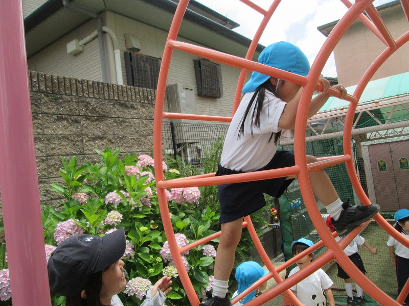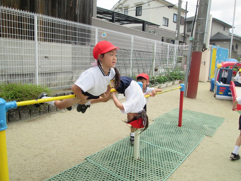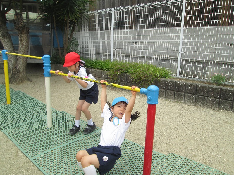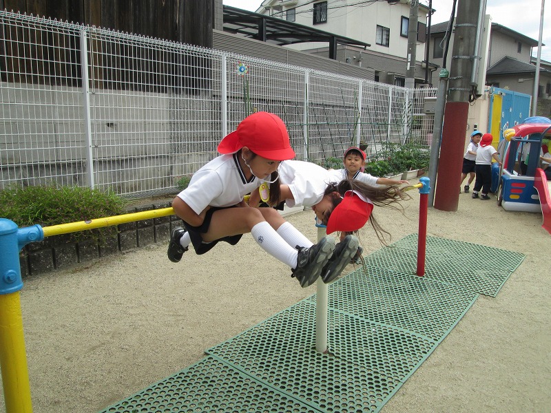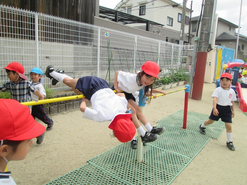 鉄棒では、前回りを上手にしているお友だちを発見!!