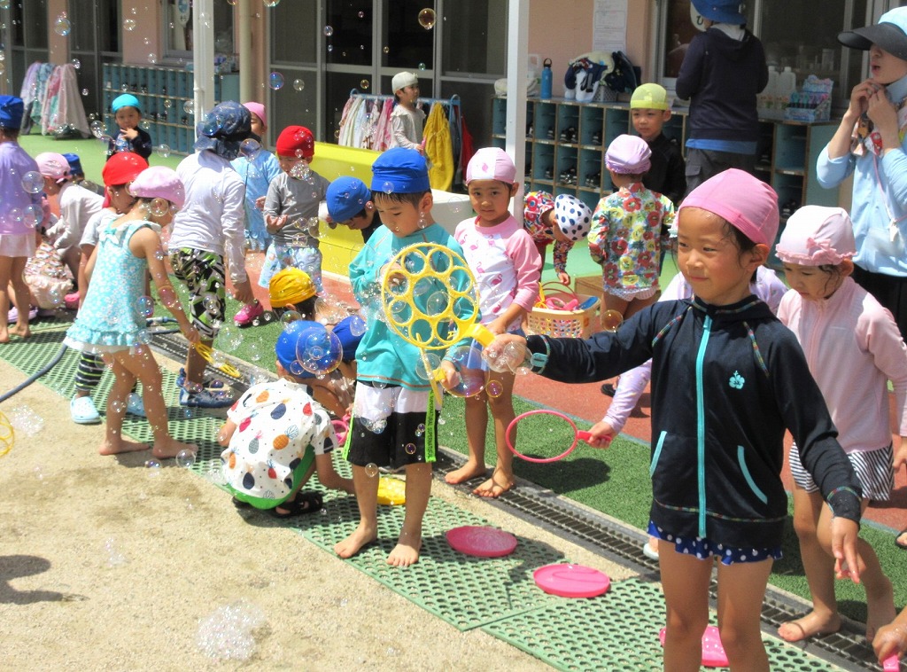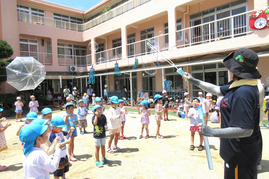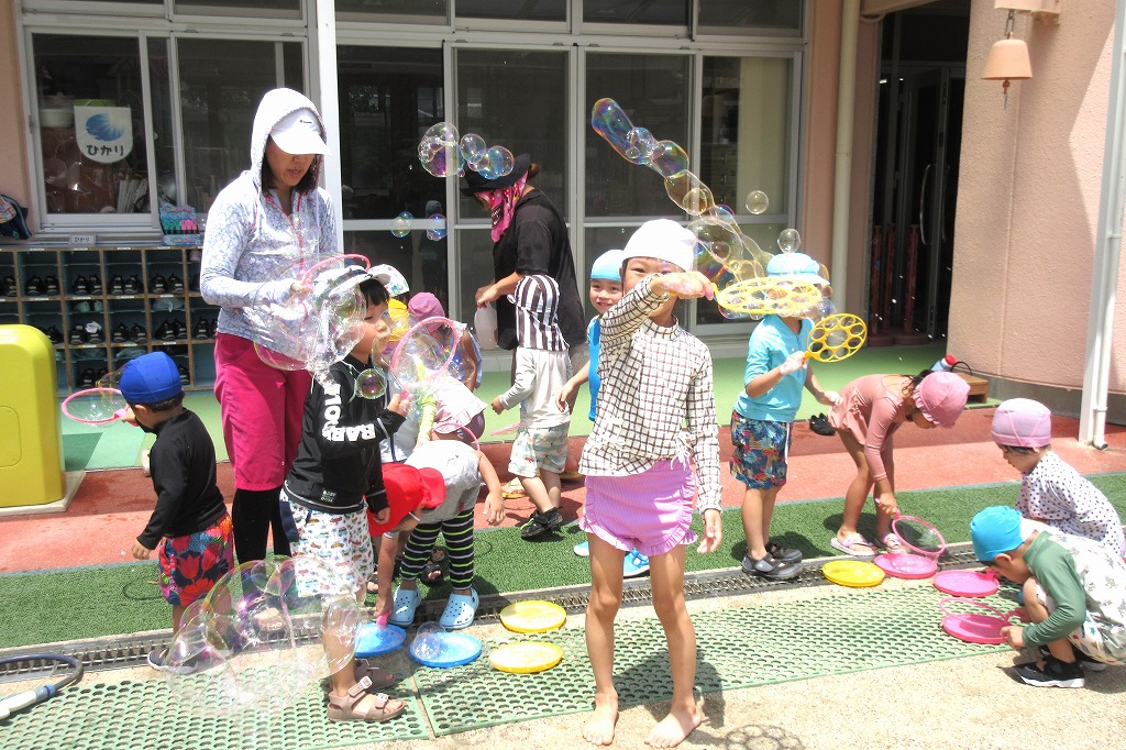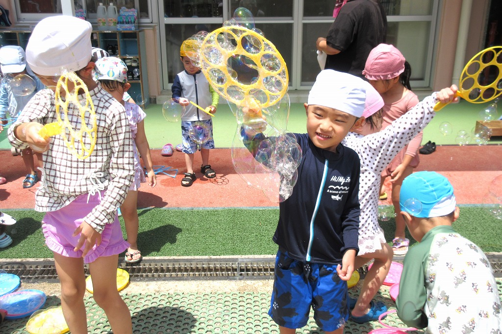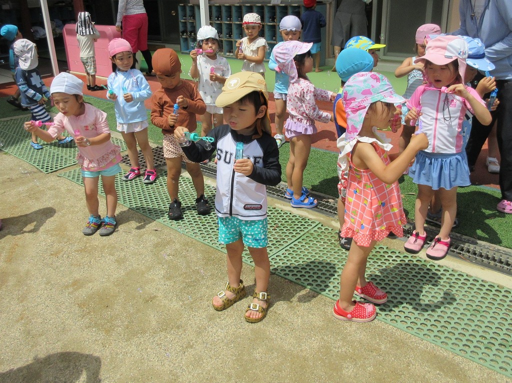 一人ひとりシャボン玉をもらって「ふーーー」