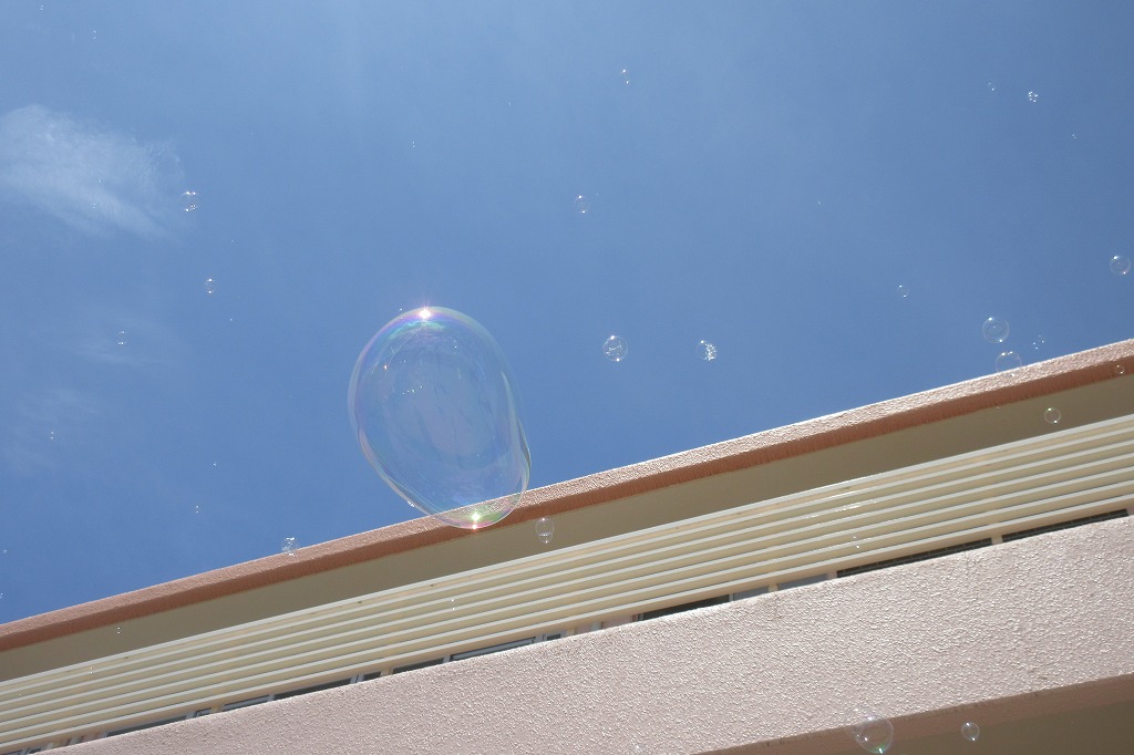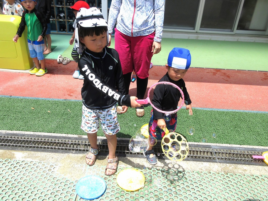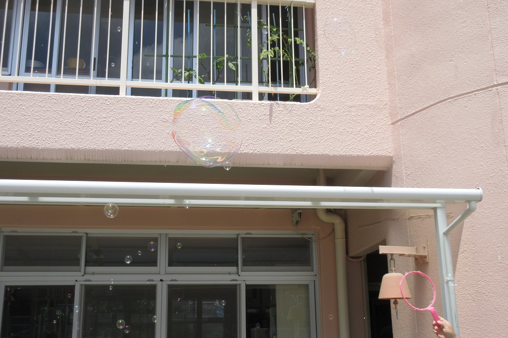 大きな輪っかを使ってシャボン玉を飛ばしました(^O^)