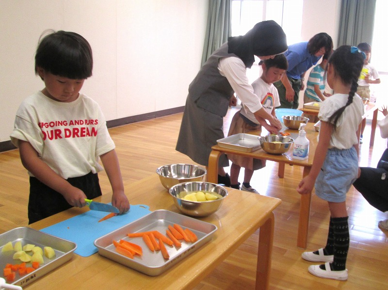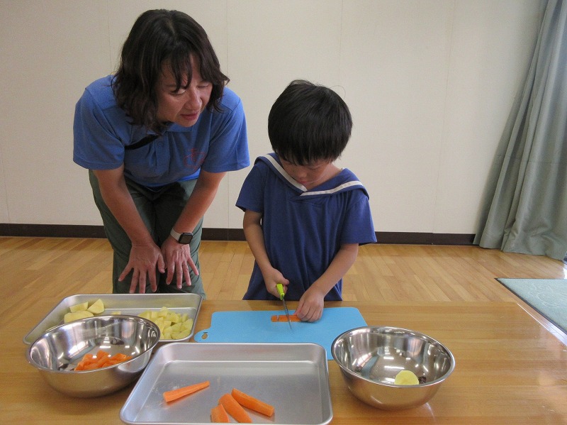 次は包丁でカレーの食材切り(*^▽^*)