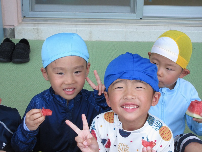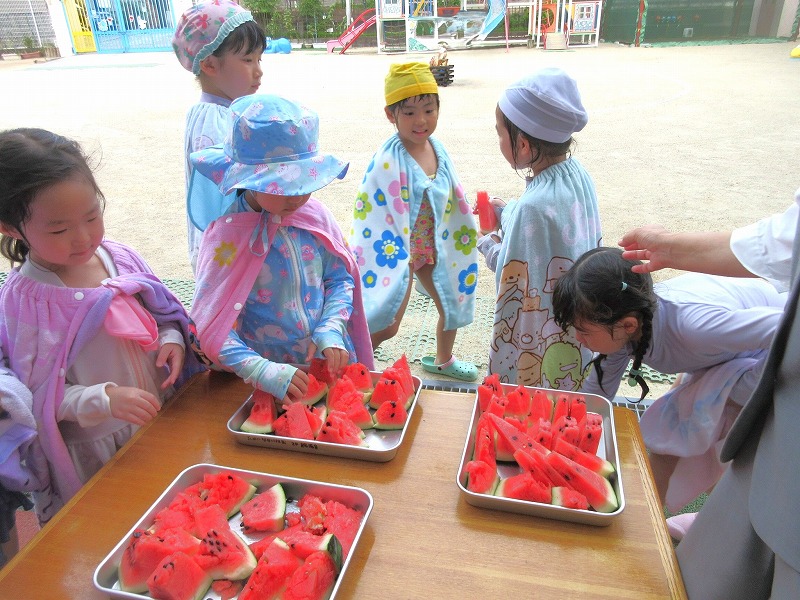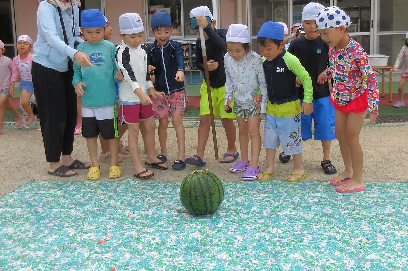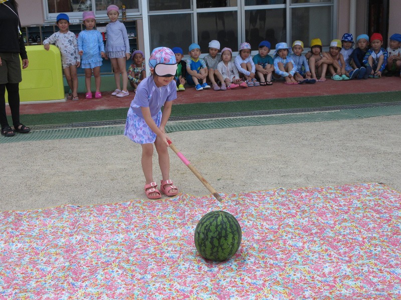 幼稚園に戻ってからは水着に着替えてスイカ割り☆彡