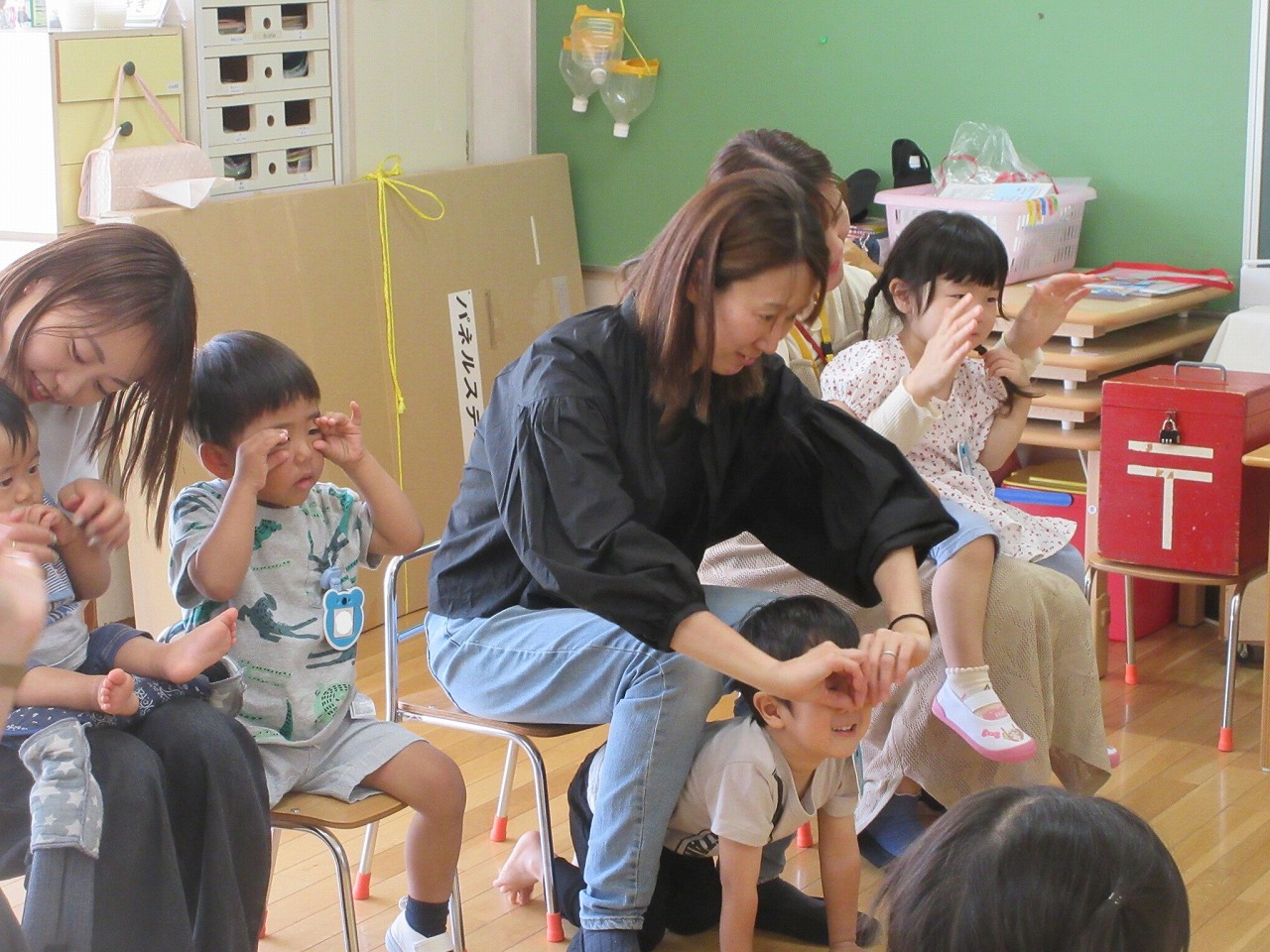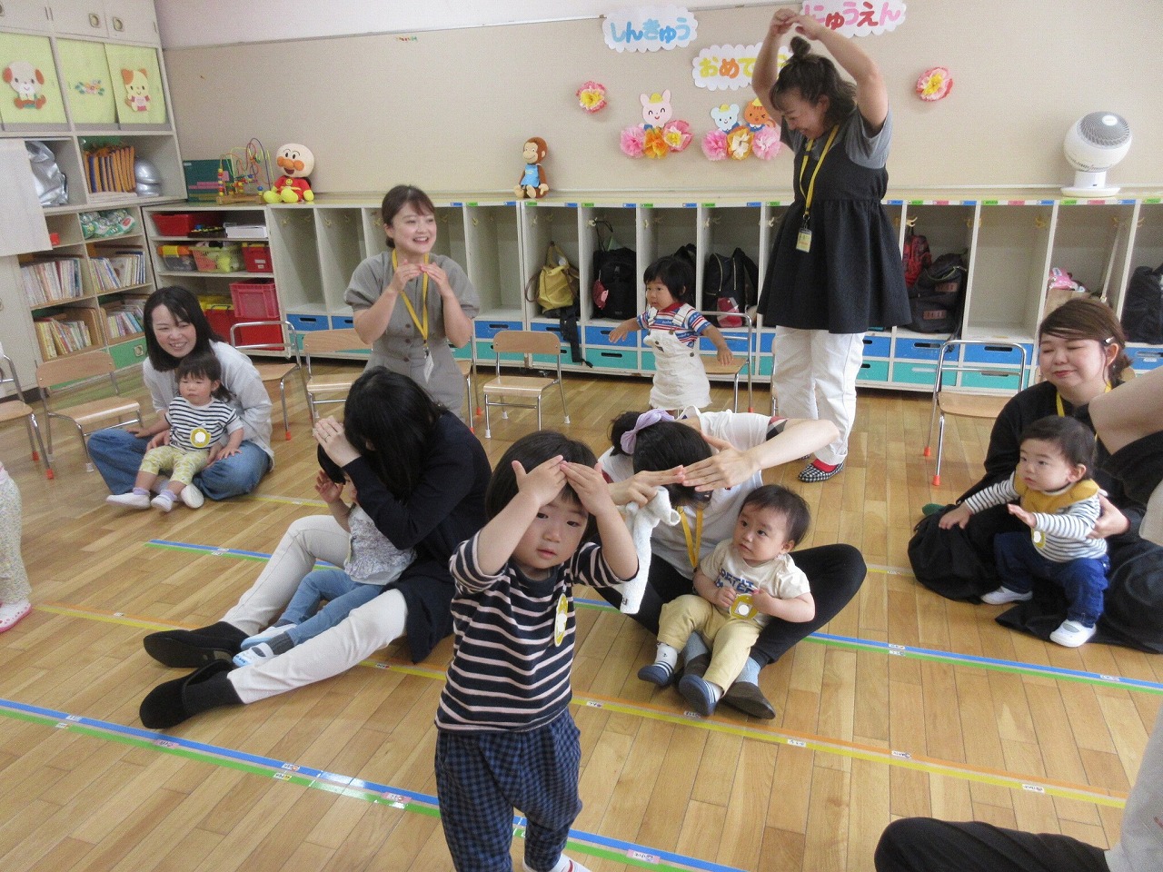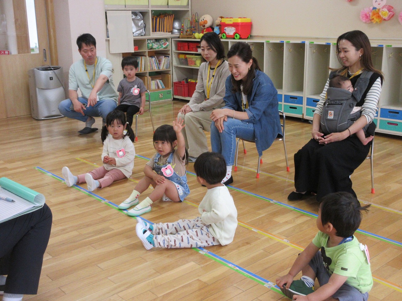 親子でリズム遊びやふれあい遊び、季節の製作や絵本の読み聞かせ、お誕生会など様々な活動を時間いっぱい楽しんで、親子またお友だちとの交流を深めていきます。