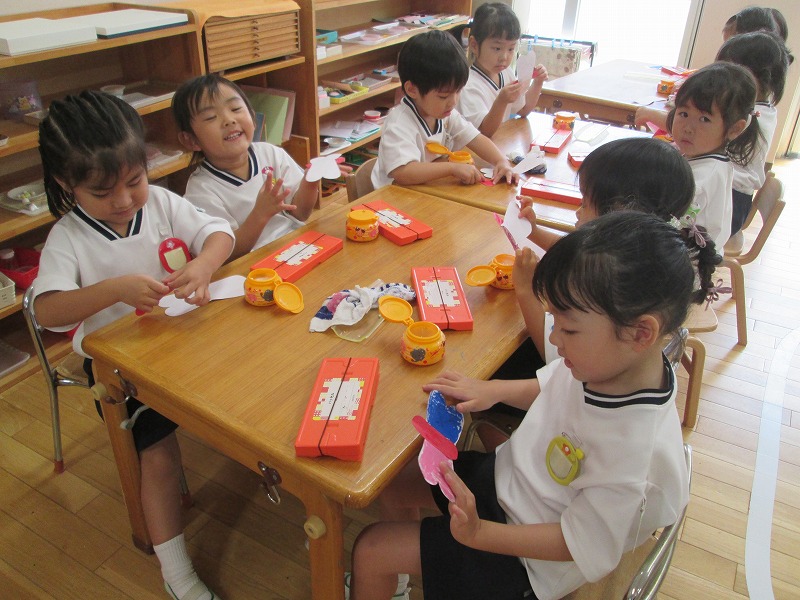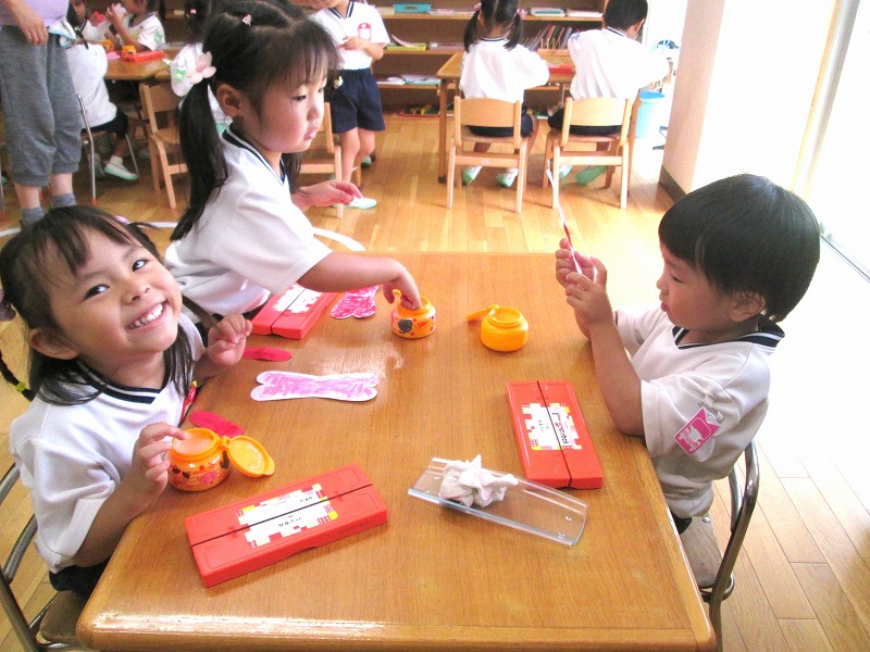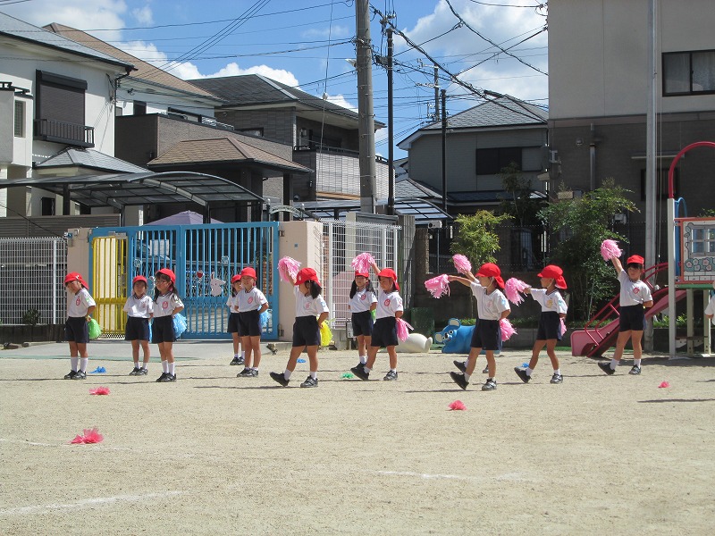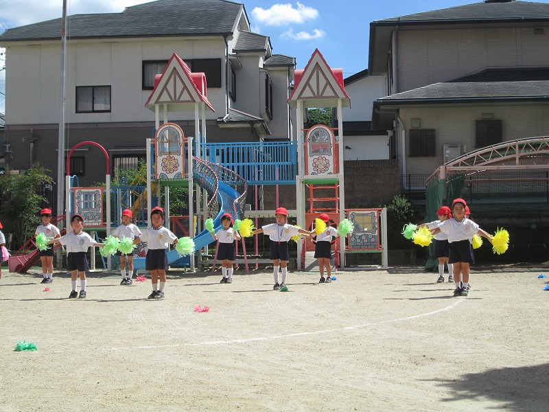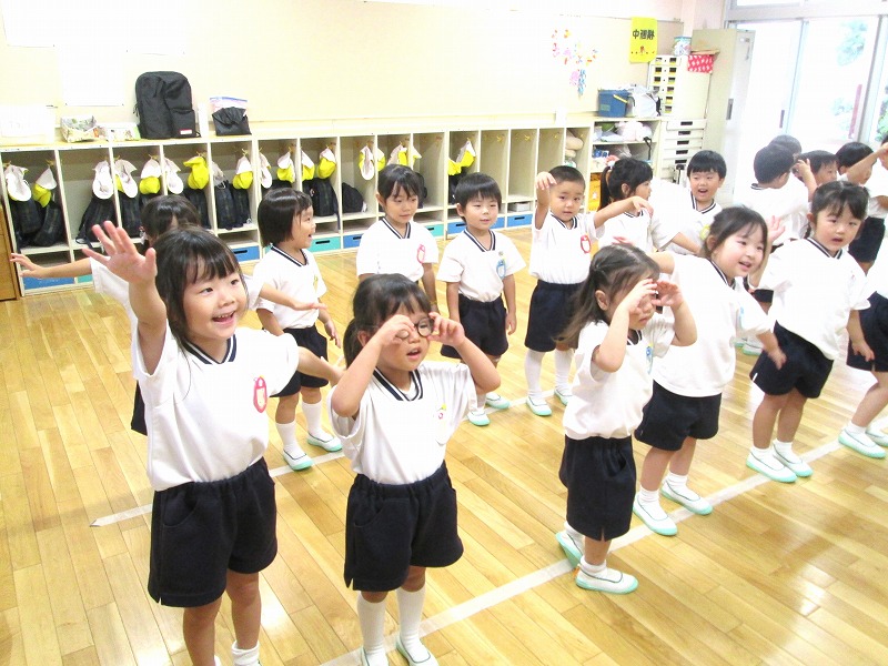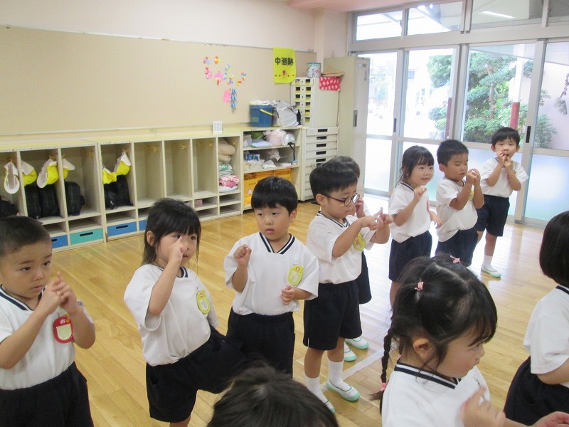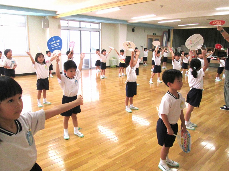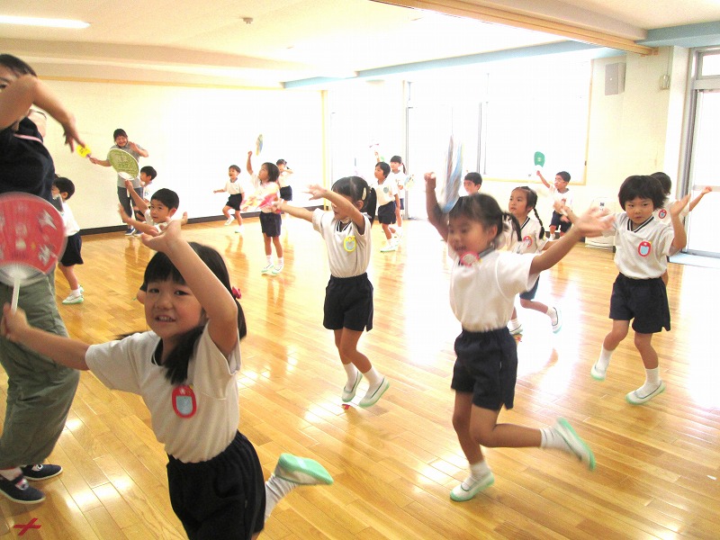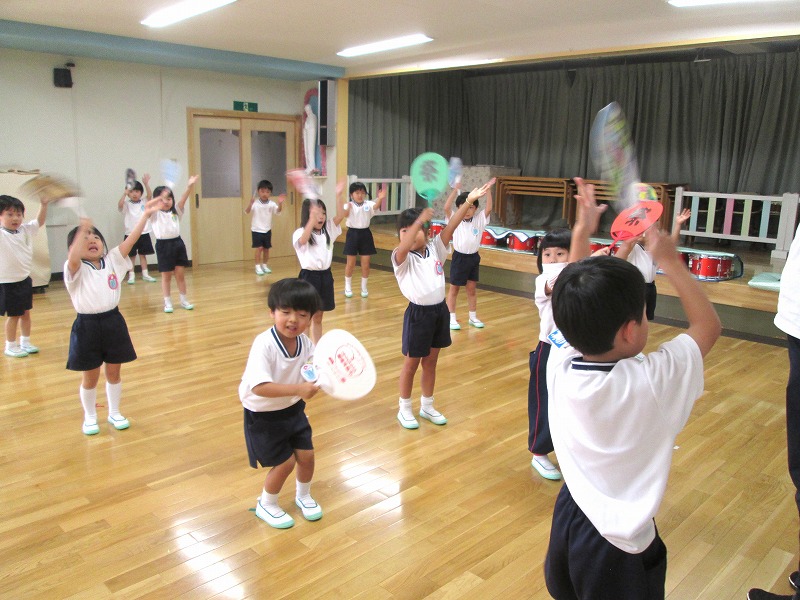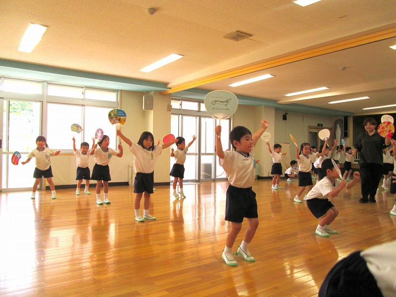 おゆうぎ室では、一人ひとりがうちわを持ってDANCE!