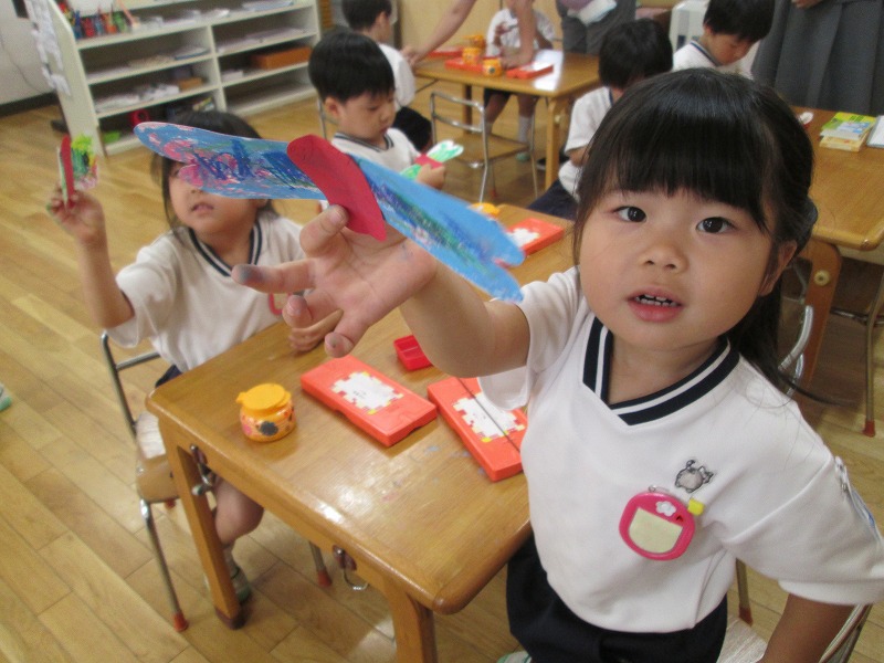 最後は作ったトンボを持って「とんぼのめがね」を歌いました♬