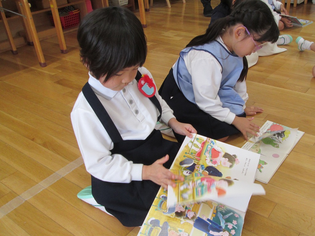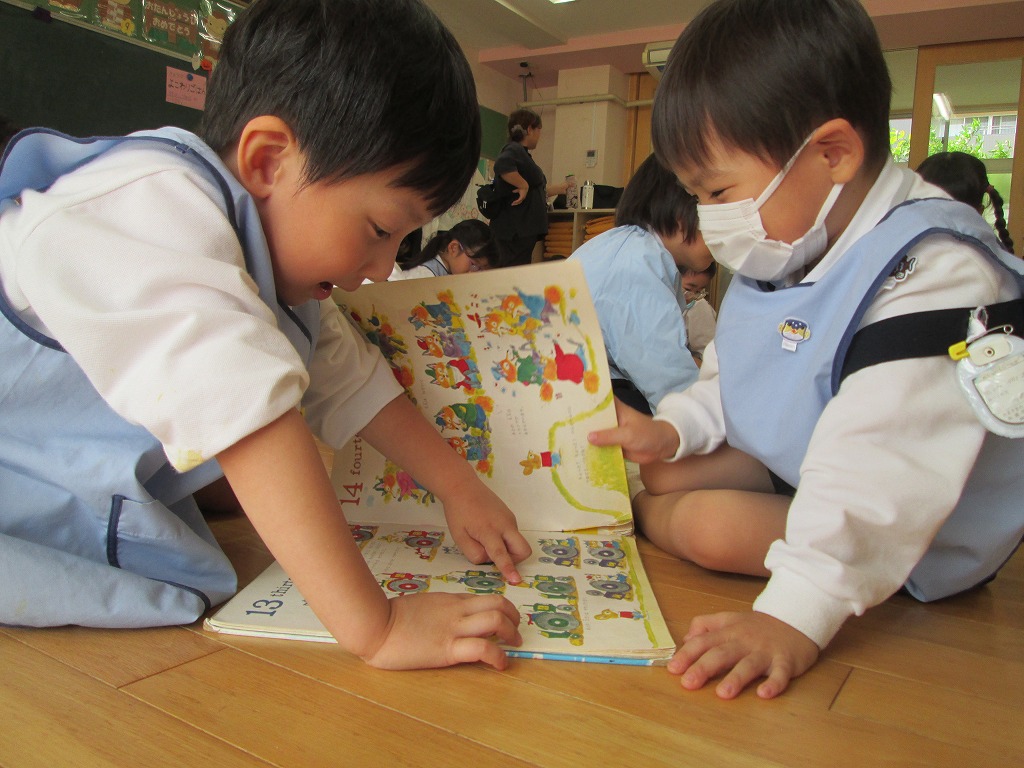 絵を見て楽しんだり、字を読んで楽しむ姿がありました♡