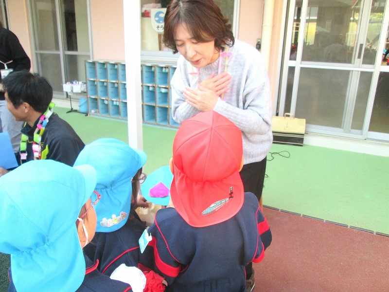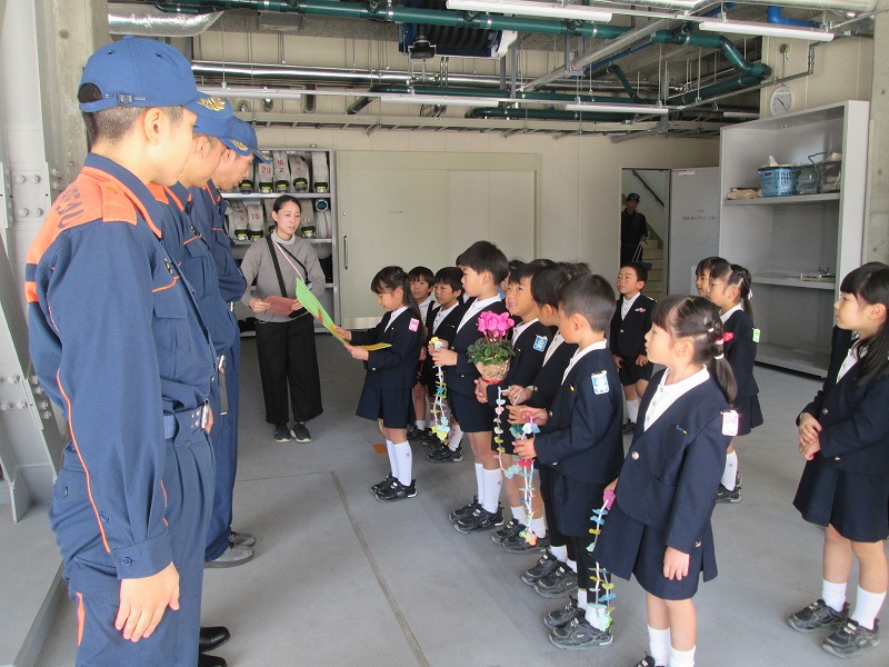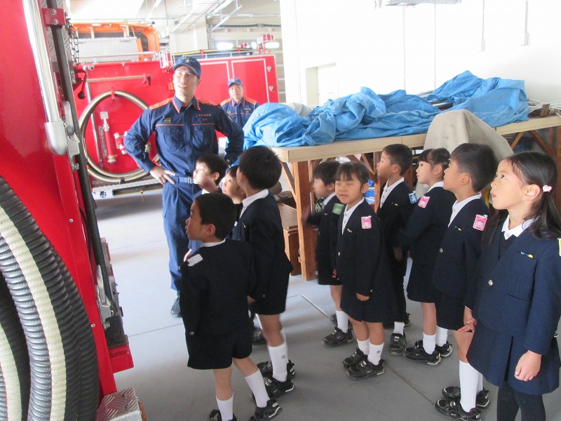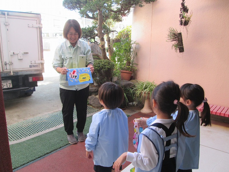 今日は、ゆりA組の子どもたちが園を代表して消防署を訪問し、感謝の気持ちを伝えました。みなさんに喜んでいただくことができました。