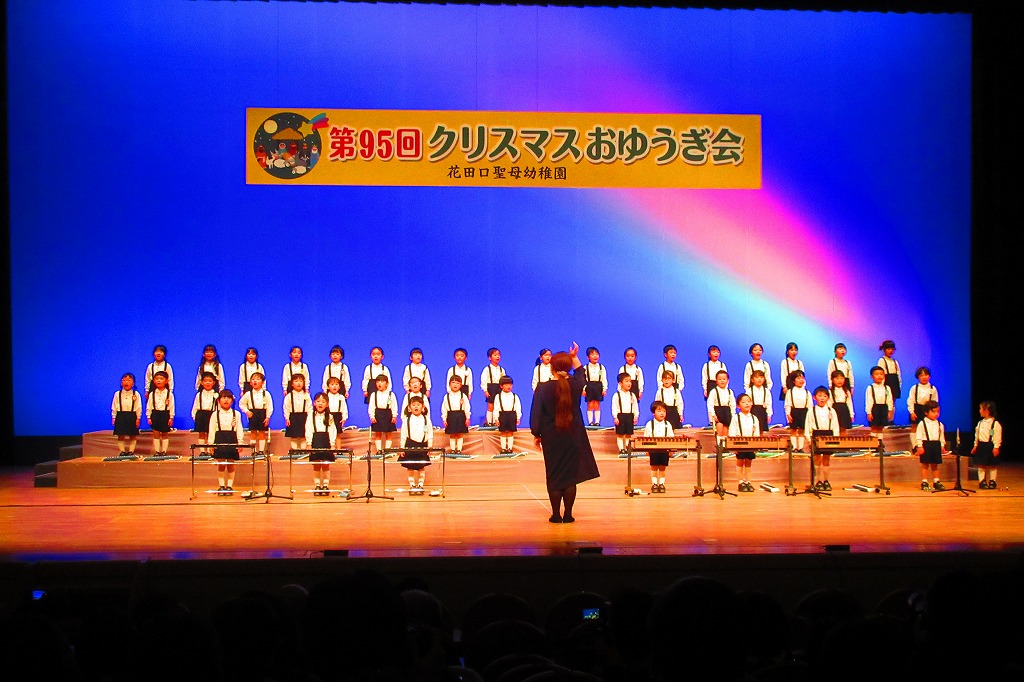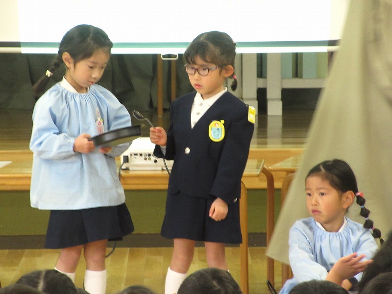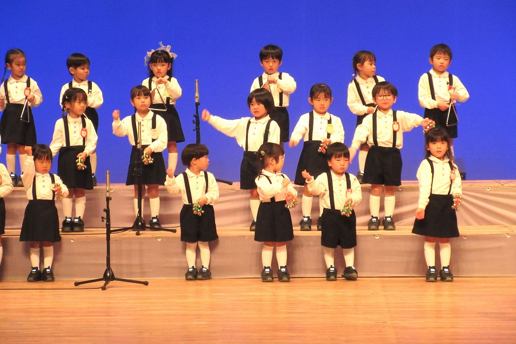 第1部最初の発表は、年少:すみれ組の合奏と歌☆彡