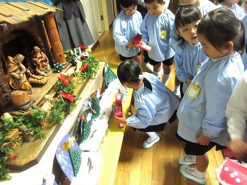 そんな子どもたちの温かい心で集めた献金は 幼子イエス様のおられる馬小屋の前に捧げられました。