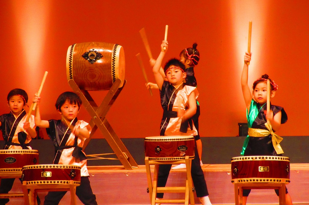 第1部最後の発表は、年長:ゆり組の和太鼓の演奏☆彡