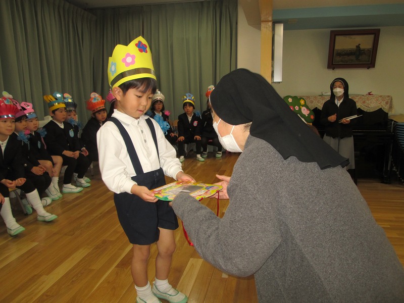 そして、園長先生から一人ひとりにプレゼントが手渡され、