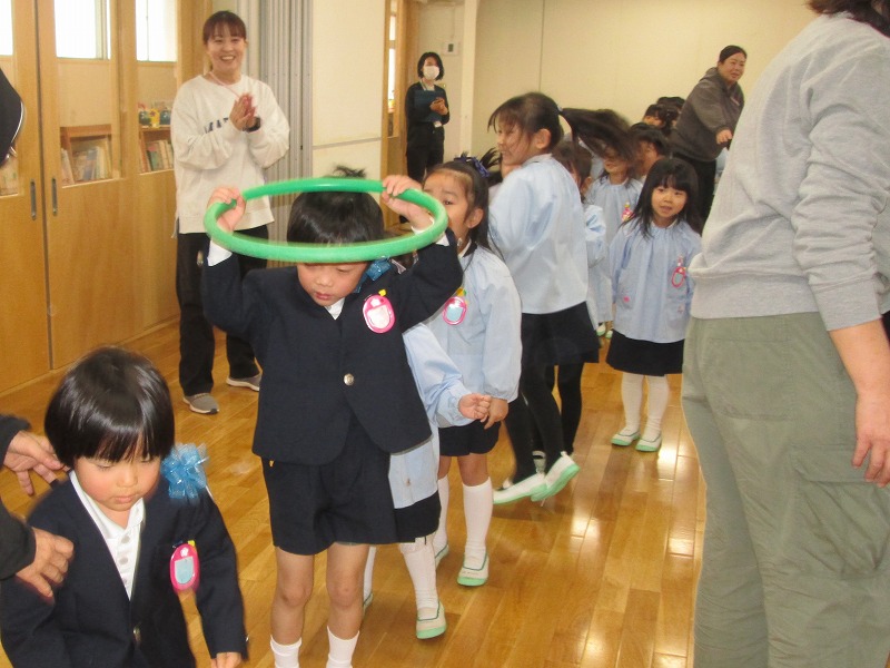 最後はクラス対抗でフープくぐりゲームをしました(^^♪