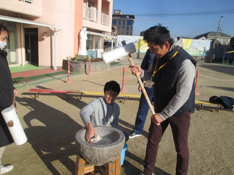 1/18(土)よいお天気に恵まれ、今年も「おもちつき」を開催することが出来ました(*^▽^*)