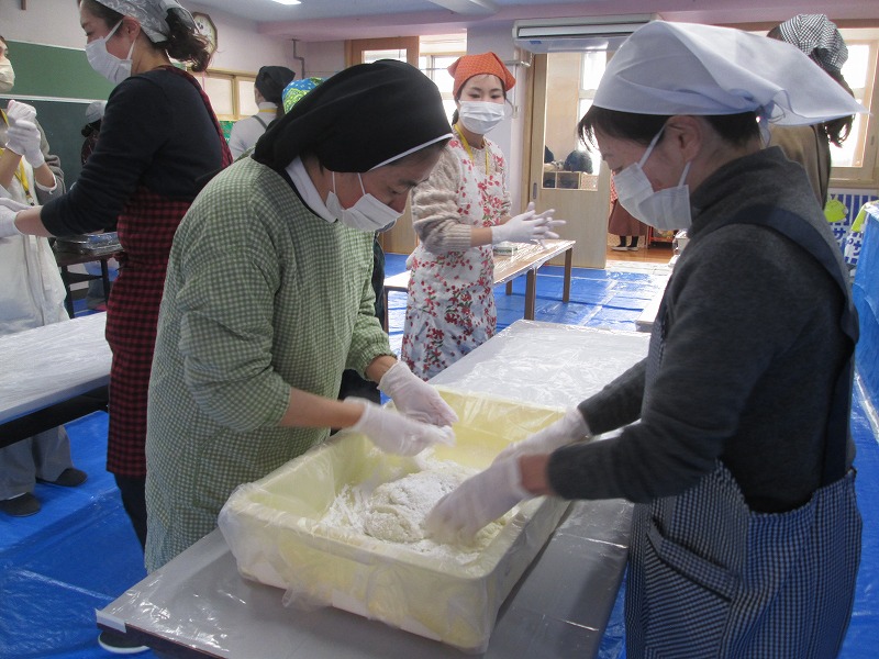 こちらは、餅丸めコーナー♡お父さん達がついたお餅を、お母さんたちが丸めて、味付けをしてくれました( *´艸`)