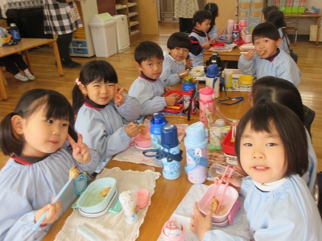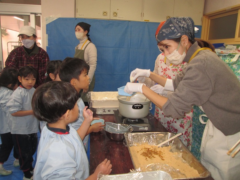 教室では、子どもたちがつきたてのお餅をおいしそうに食べていました(*^▽^*)