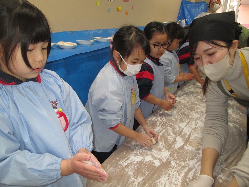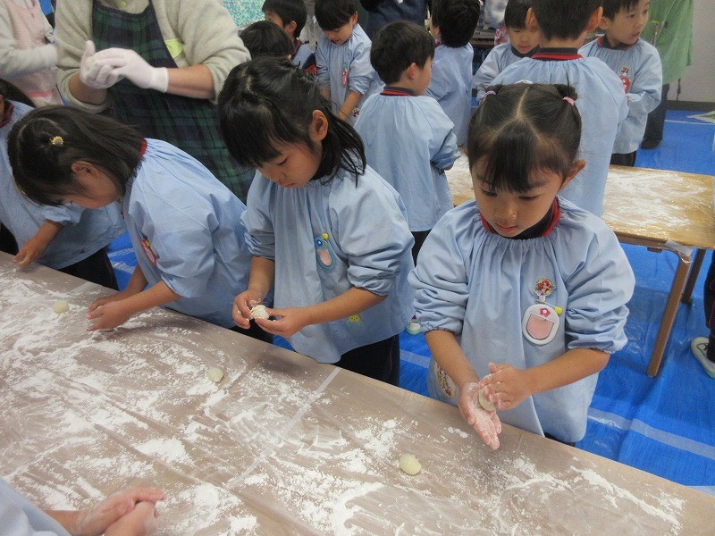 年長ゆり組は「おもちまるめ」体験もしました(^^♪