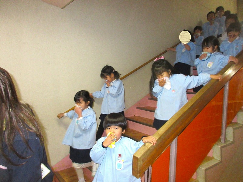 消防士さんからは、子ども達がおしゃべりせずに逃げられたことを褒めていただきました☆彡