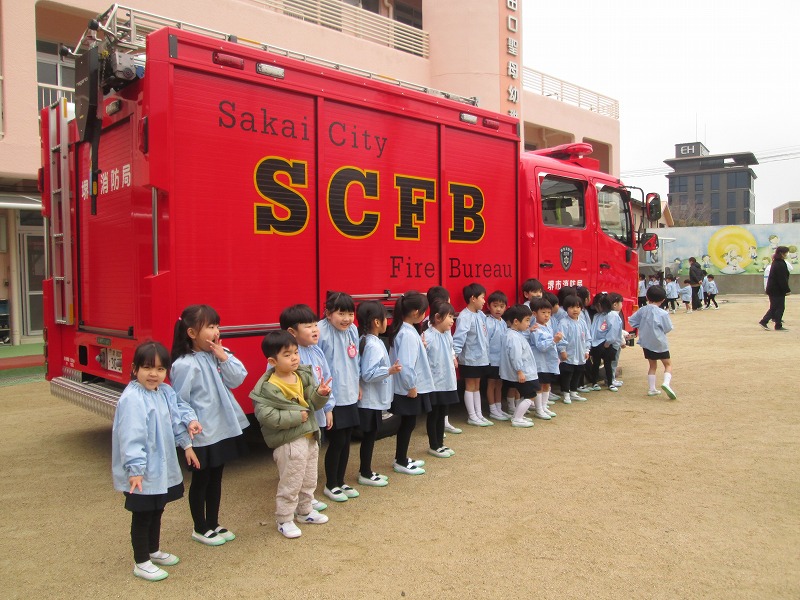 近くで見た消防車はピカピカでした!また来てください♡
