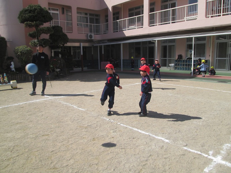 ボールに合わせて、逃げたりキャッチしたり、上手でした!
