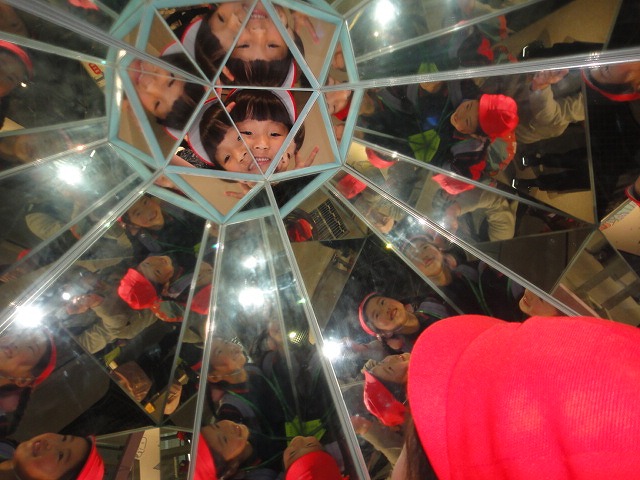 鏡に映る友だちや自分がたくさんで大はしゃぎ!!