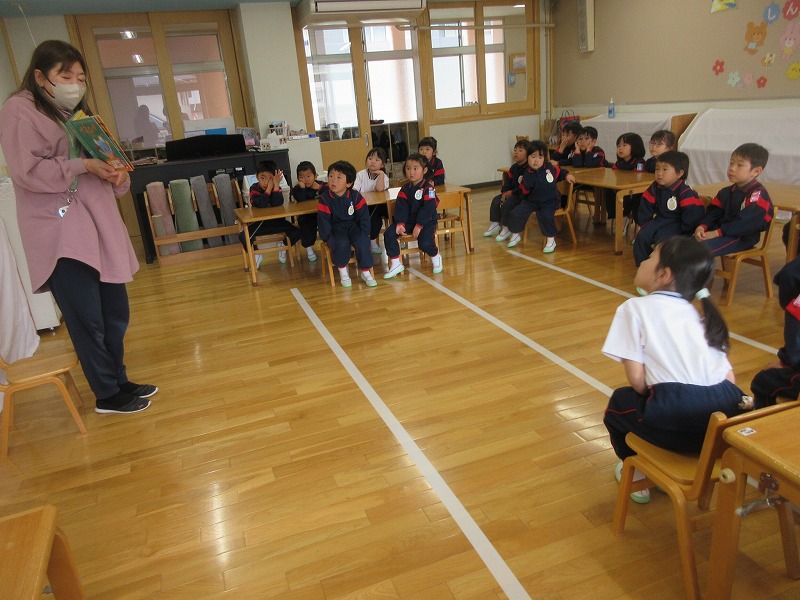 式前の手遊びや大型絵本では、子どもたちの笑顔が見れました♡少し緊張がほぐれたようです!