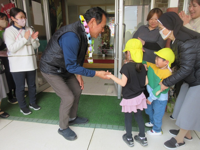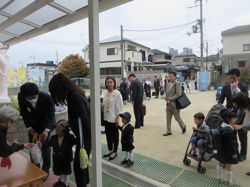 今日は入園式!子どもたちは大きな制服に身を包み、これからの園生活に期待で目をキラキラさせながら登園してくれました(*^▽^*)