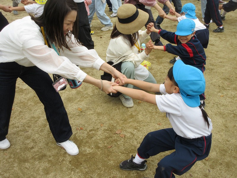 押したり引いたり親子で力比べ。『こんなに力が強くなったんだ』と子どもの成長が感じられました。