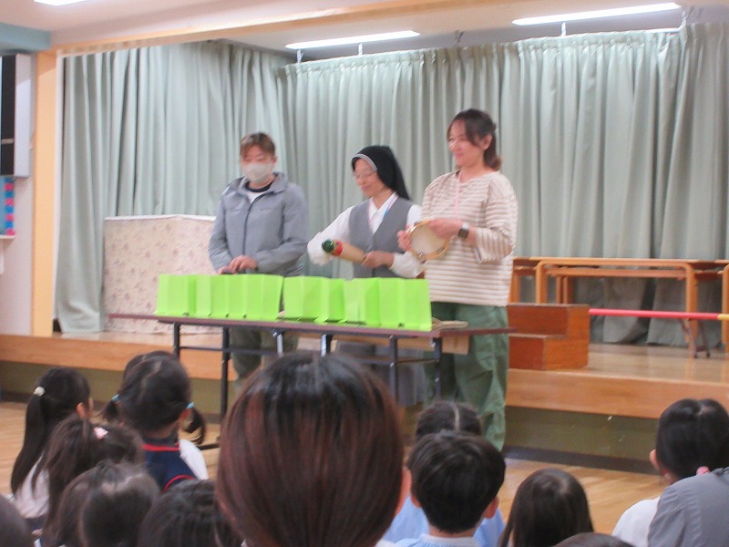 「共同祈願」では、世界平和、災害、病気、家族、幼稚園のためにお祈りをおささげしました(*^▽^*)