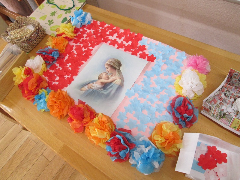 5月に入ってから、各クラスで聖母祭の時に捧げる“心の花束”の準備をしています♡