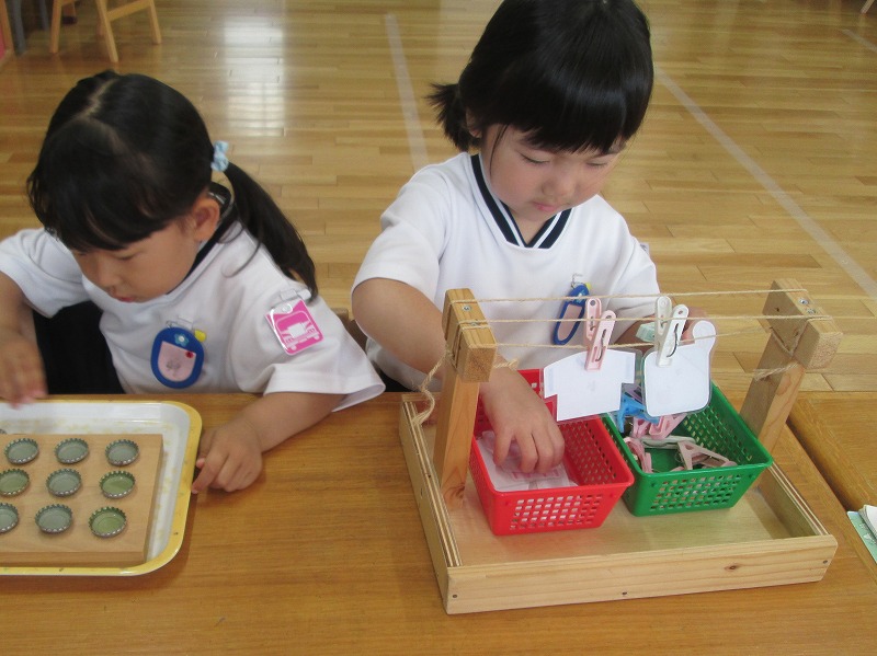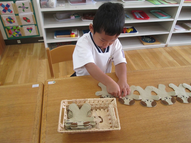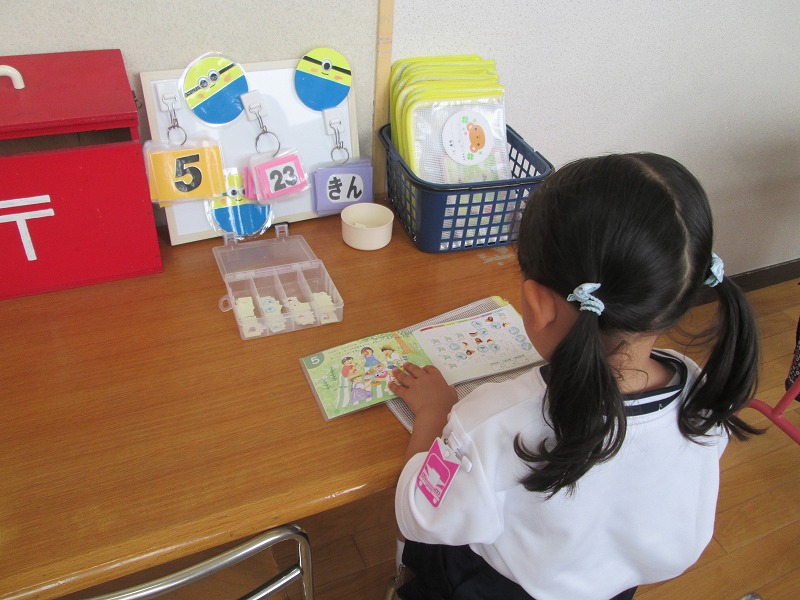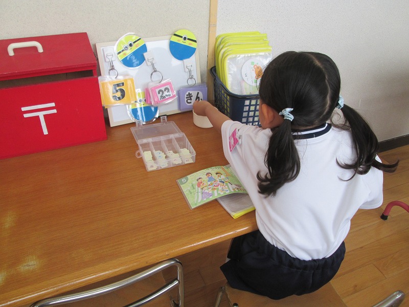 入園してまだ1か月ですが、朝の支度がわかり、日めくり表を見てシールを貼っている様子