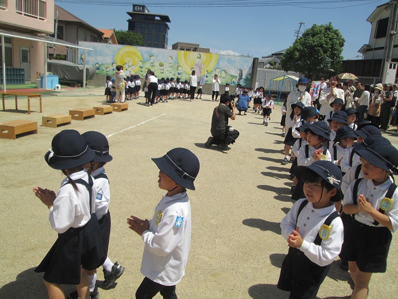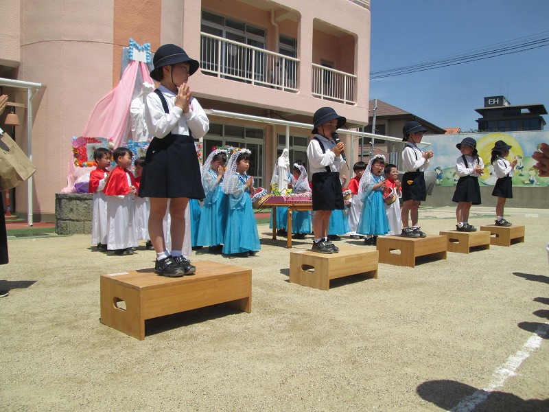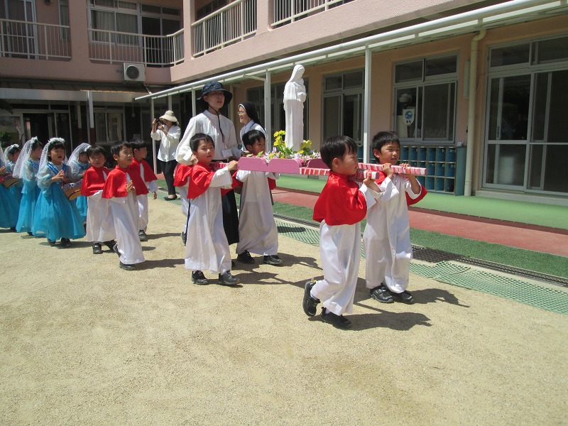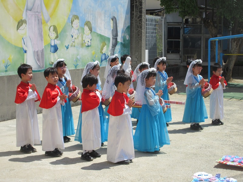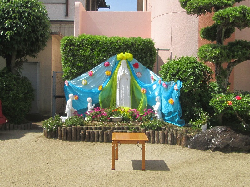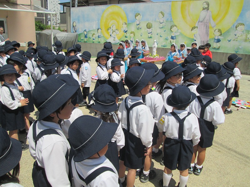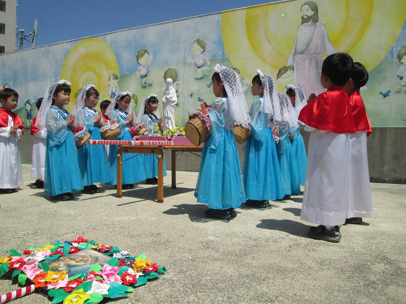 今年の「聖母祭」は良いお天気に恵まれ、幼稚園の園庭で行われました!