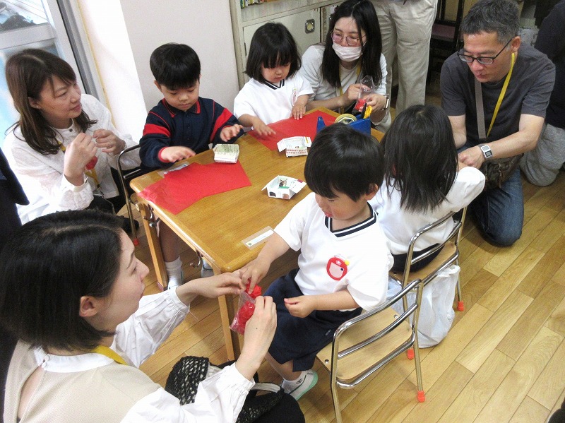 家族のみんなが幼稚園に来て、いっしょに製作をしたり、踊ったり、ゲームをして楽しみました(^^♪