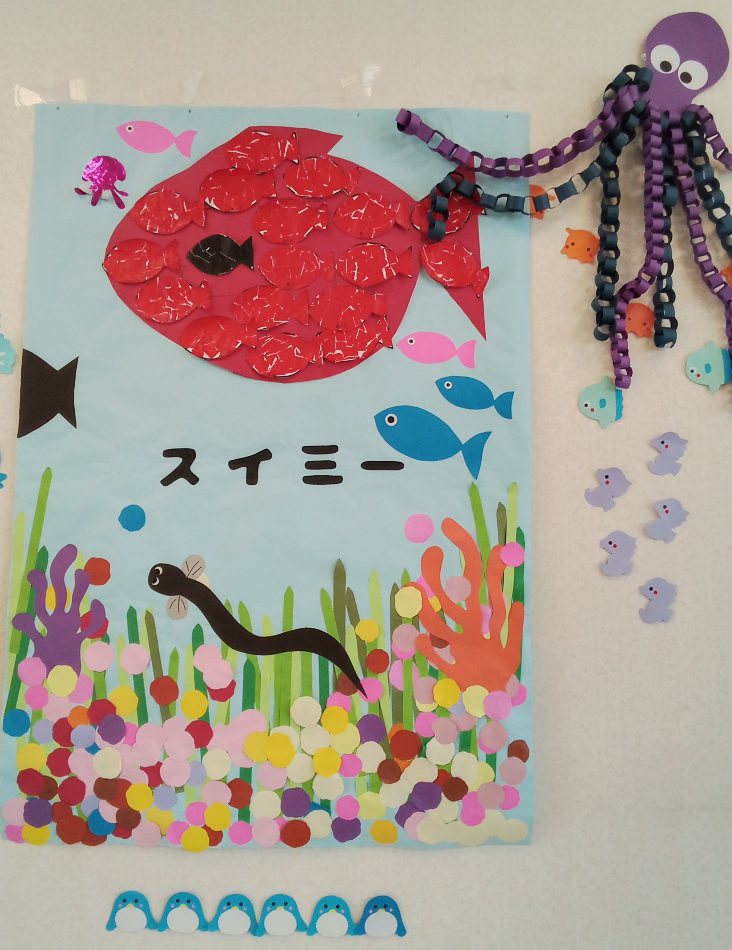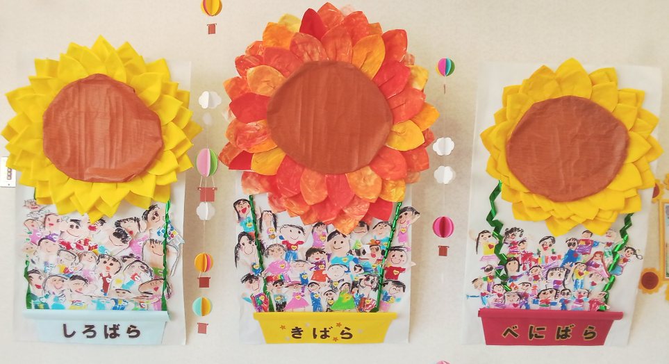 紫陽花は、グループのお友だちと協力して一つのお花を作りましたよ。
