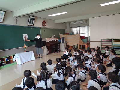園長先生に神様のお話をしていただきました。お話も上手に聞けましたね♪