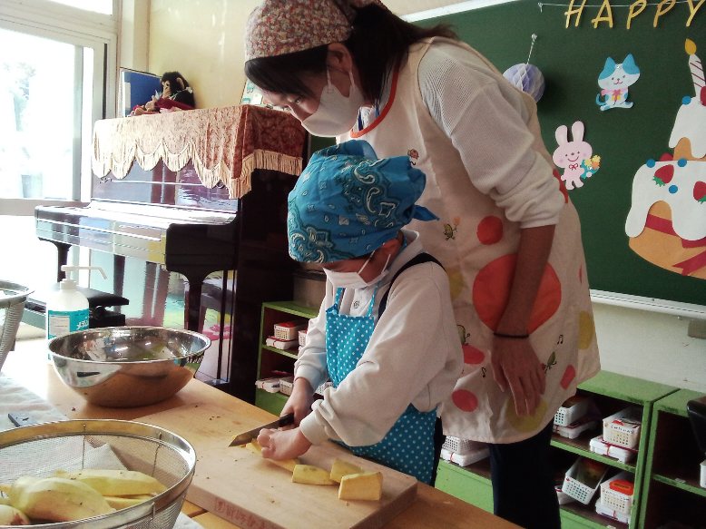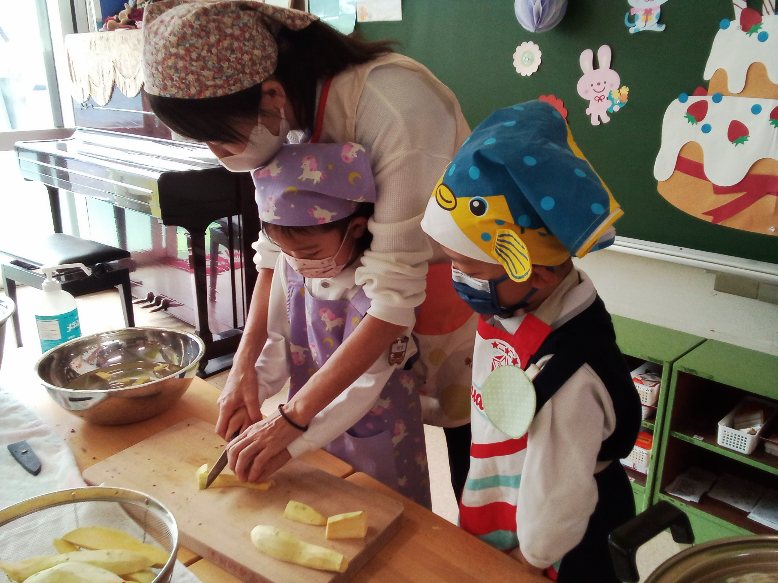 いよいよ、自分たちで収穫したお芋のクッキングの始まりです。