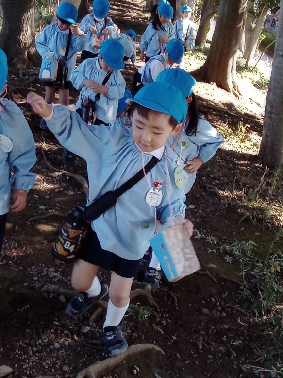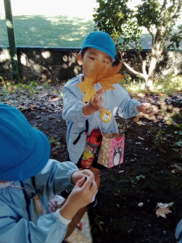 お散歩バックには、きれいな葉っぱや、どんぐり、木の実、宝物でいっぱいになりました。