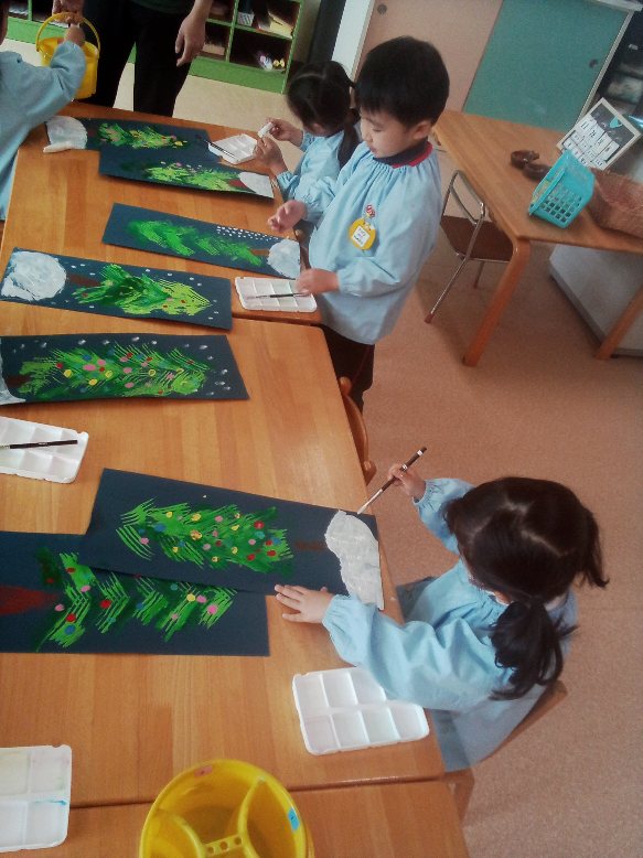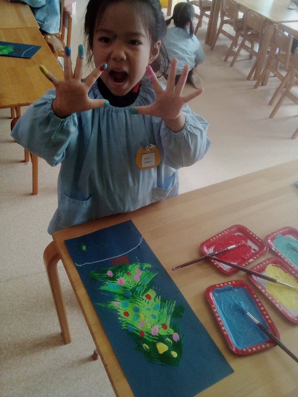 飾りは、可愛いお指を使って。全部の指を使いました。