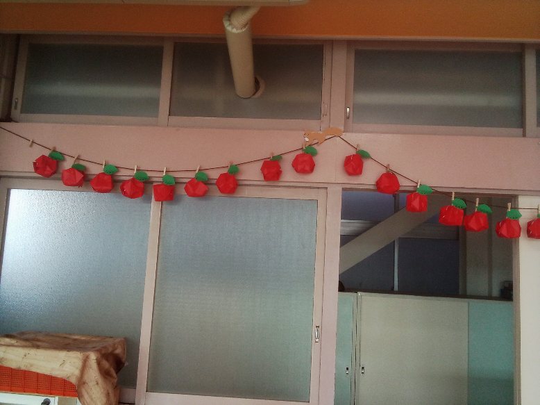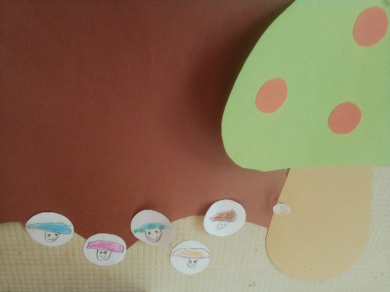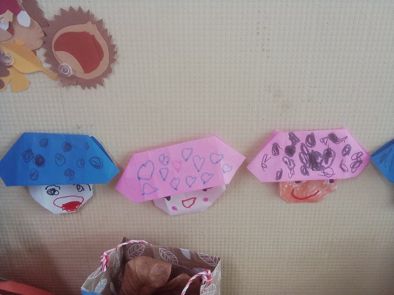可愛いきのこを誰かが描いて貼ってくれていました。きのこの学校だそうです。