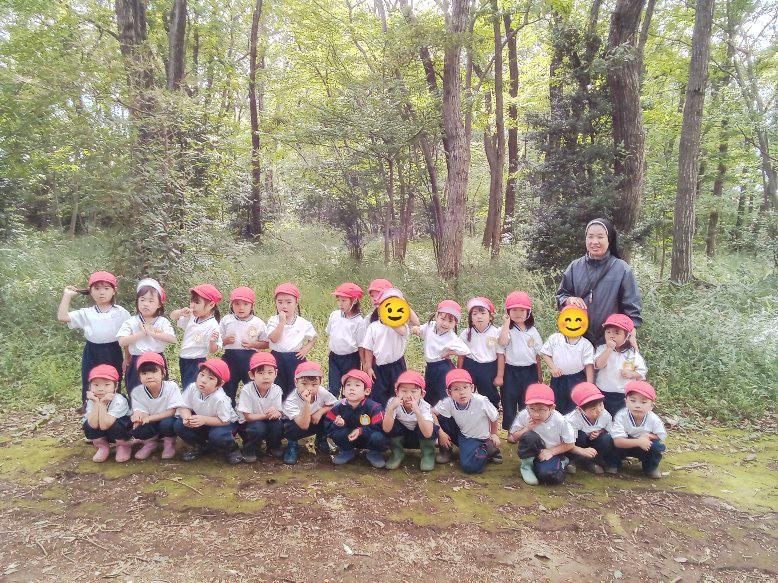 楽しみにしていたお芋掘り遠足お天気も良く、みんなでチューリップバスに乗って、出発!クイズをしたり、歌を歌って大盛り上がり、あっというまに、川越の「あらはた園」に到着し、お芋掘りを体験しました。その後は、森へお散歩、ドングリ拾いをしました。とっても楽しい1日となり、お芋掘りの感想画も思い思いに描きました。